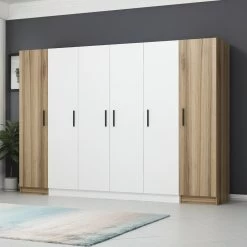 Met een breedte van 270 cm, een hoogte van 190 cm en een diepte van 52 cm biedt deze kledingkast voldoende ruimte om al je spullen georganiseerd op te bergen. Of je nu een grote collectie kleding, accessoires of andere benodigdheden hebt, deze kledingkast is er voor jou.
