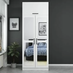 Koop de Woody Fashion kledingkast voor een stijlvolle opbergoplossing. Deze 18 mm dikke kast is gemaakt van 100% gemelamineerd spaanplaat en heeft een breedte van 90 cm, een hoogte van 235 cm en een diepte van 52 cm. In een strakke witte kleur is deze kledingkast perfect voor elke ruimte.