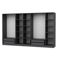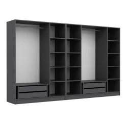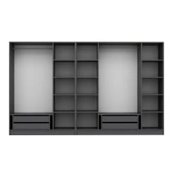 De antracietkleur van de kledingkast voegt een vleugje verfijning en elegantie toe aan elke kamer. De diepe en rijke tint creรซert een opvallend contrast met lichtgekleurde muren of sluit naadloos aan bij donker getinte interieurs.