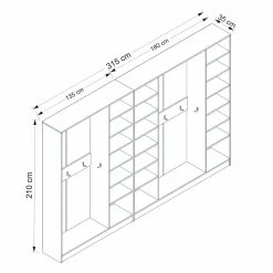 Met een breedte van 315 cm, een hoogte van 210 cm en een diepte van 35 cm biedt de Woody Fashion Halstandaard voldoende opbergruimte voor al je benodigdheden in de hal. Je kunt je schoenen, tassen en andere accessoires gemakkelijk georganiseerd opbergen, waardoor je hal geen rommel meer heeft.