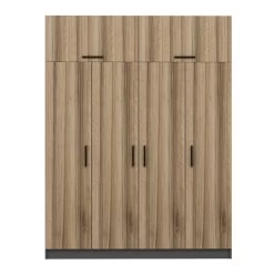 Met een royale breedte van 180 cm, een hoogte van 235 cm en een diepte van 52 cm biedt de Woody Fashion kledingkast voldoende opbergruimte voor al je kleding en accessoires. Het ruime interieur is voorzien van talloze legplanken, zodat je je spullen gemakkelijk kunt ordenen.