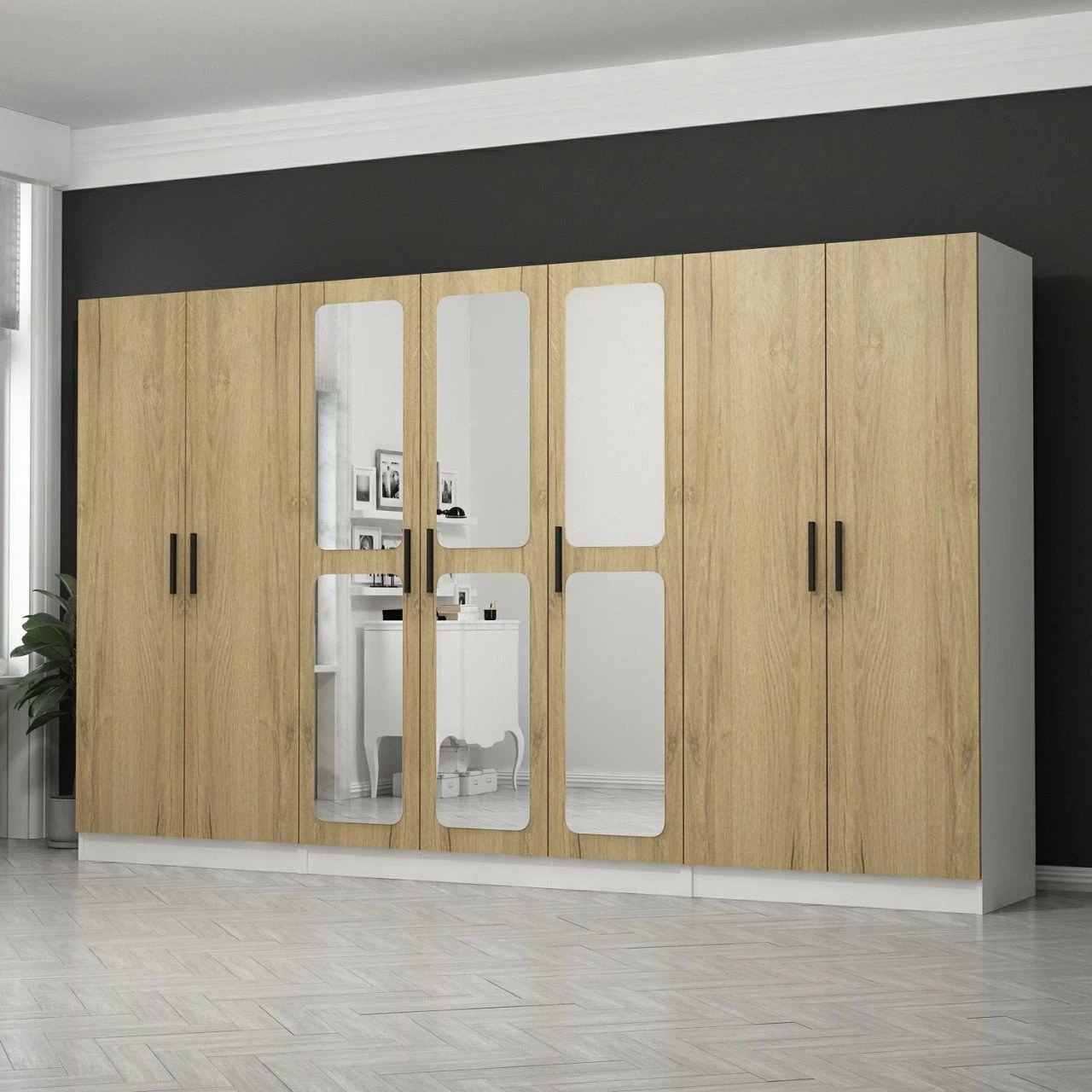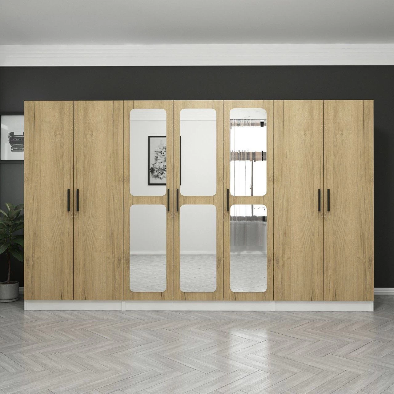 Met een breedte van 315 cm, een hoogte van 190 cm en een diepte van 52 cm biedt deze ruime kast voldoende ruimte voor al je spullen. Hij is voorzien van talloze legplanken, zodat je je kleding, schoenen en accessoires netjes kunt ordenen. Geen rommel meer!