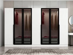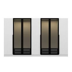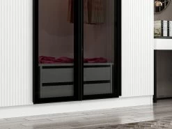 De Woody Fashion garderobekast biedt veel opbergruimte met talloze planken en een strakke fumekleur. Hij is gemaakt van 100% gemelamineerd spaanplaat en garandeert duurzaamheid.