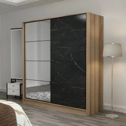 Met een dikte van 18 mm biedt deze kast uitzonderlijke stevigheid en stabiliteit, zodat je spullen veilig opgeborgen zijn. De royale afmetingen van 180 cm breedte, 210 cm hoogte en 52 cm diepte bieden voldoende ruimte om je garderobe efficiënt te organiseren.