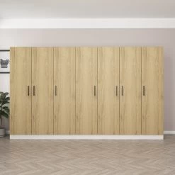 Met een dikte van 18 mm biedt de Woody Fashion Kledingkast stevigheid en stabiliteit, zodat je spullen veilig opgeborgen blijven. De royale breedte van 315 cm biedt voldoende ruimte voor al je kleding, terwijl de hoogte van 190 cm en diepte van 52 cm zorgen voor een efficiënte organisatie zonder al te veel vloeroppervlak in beslag te nemen.