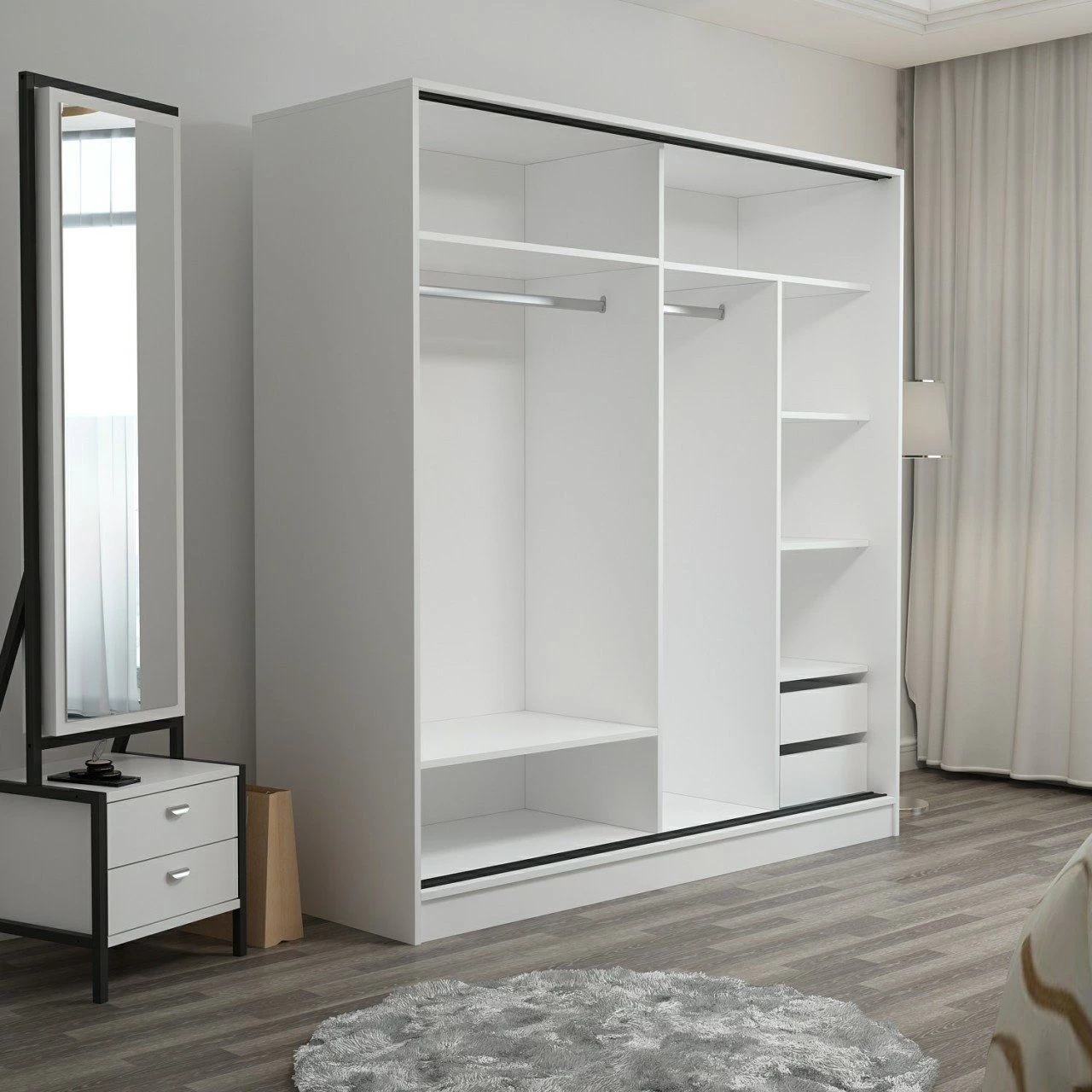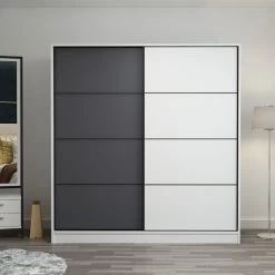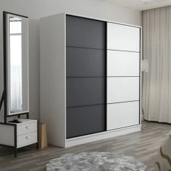 De Woody Fashion Kledingkast is ontworpen in een tijdloze wit antraciet kleur, waardoor het een veelzijdige aanvulling is op elke slaapkamer of kleedruimte. Het neutrale kleurenschema past naadloos bij elke bestaande inrichting of stijl en voegt een vleugje verfijning toe aan je ruimte.