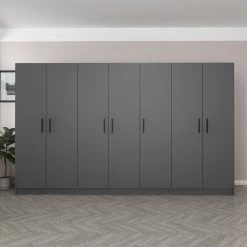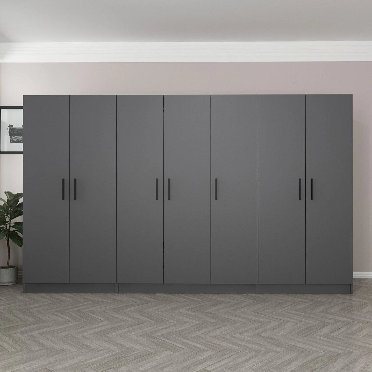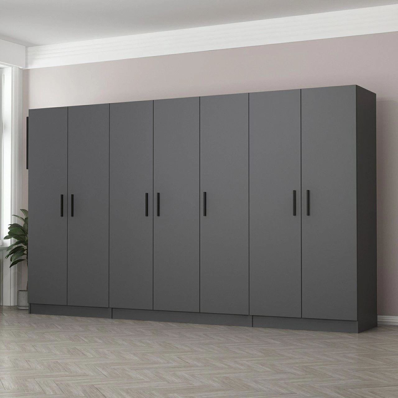 De Woody Fashion kledingkast heeft een royale breedte van 315 cm, waardoor er voldoende opbergruimte is voor al je kleding en accessoires. De hoogte van 190 cm maakt het mogelijk om lange kledingstukken zoals jurken en jassen op te hangen, terwijl de diepte van 52 cm zorgt voor een efficiënt gebruik van de ruimte zonder te volumineus te zijn.