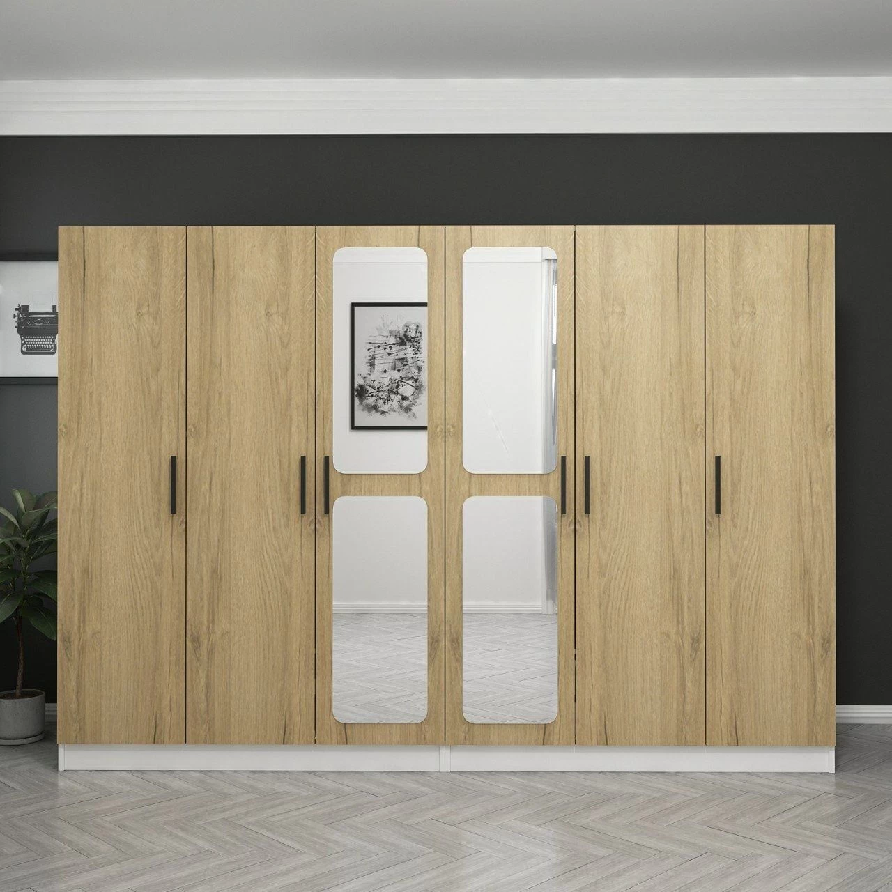 Een van de belangrijkste kenmerken van deze kledingkast zijn de vele legplanken. Met deze planken kun je je spullen netjes en georganiseerd opbergen. Je kunt je kleding, accessoires en andere items gemakkelijk categoriseren, waardoor het gemakkelijker wordt om te vinden wat je nodig hebt wanneer je het nodig hebt.