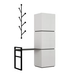 Het Woody Fashion Schoenenkastje wordt geleverd in een stijlvolle wit antraciet kleur en voegt een modern tintje toe aan elke kamerinrichting. Of je hem nu in je slaapkamer, hal of inloopkast zet, hij past moeiteloos bij je bestaande meubels en geeft de ruimte een geraffineerd gevoel.