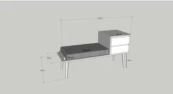 De halstandaard van is gemaakt van 100% gemelamineerd spaanplaat met een dikte van 30 mm. Hij is voorzien van telescopische ladegeleiders, 52 DNS schuim om op te zitten en wordt geleverd met een kussen. Met een breedte van 120 cm, een hoogte van 40 cm en een diepte van 45 cm heeft hij ook twee lades, verschillende planken en kan hij aan de muur worden bevestigd. De kleur is walnoot antraciet